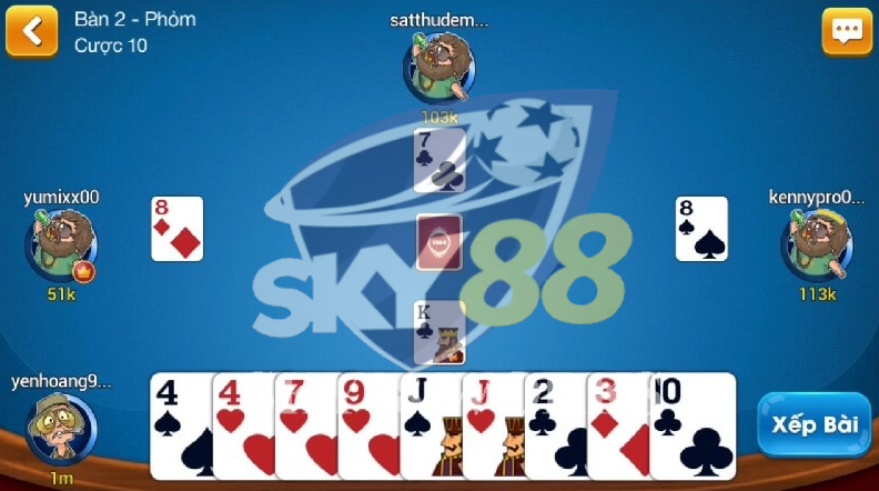 Phỏm là một trong những game bài Sky88 vô cùng thú vị, trong đó bạn cần loại bỏ những lá rác và giữ lại các tổ hợp từ 3 đến 4 cây. Khi rút bài, bạn hãy xem xét cẩn xem liệu lá bài đó có thể kết hợp cùng với các quân rác của mình hay không. Nếu may mắn và ù bài, bạn sẽ nhận được một phần thưởng hấp dẫn từ nhà cái chúng tôi.